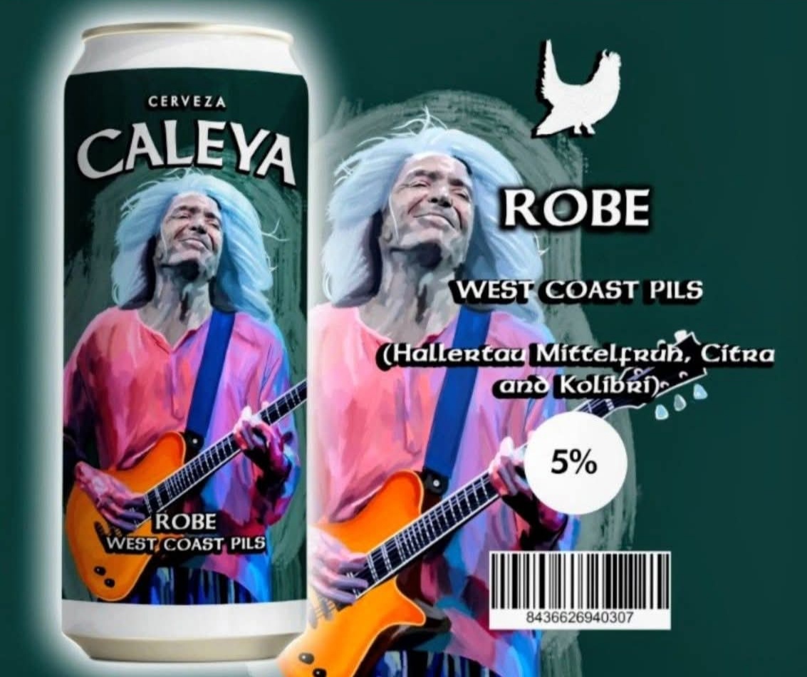La cerveza artesana que lanza la asturiana Caleya en honor de Iniesta, se llama Robe. Es una IPA Lager, ya que se presenta como una West Coast Pils. Ha sido elaborada con el lúpulo alemán Hallertauer Mittelfruh, el americano Citra y el esloveno Styrian Kolibri (incluye un dry hopping con Citra y Styrian Kolibri). También cuenta con 5% vol de alcohol. Por eso mismo, tenemos una cerveza, limpia, balanceada, ligera y amarga. En la etiqueta se representa al músico, tal y como el era, con su guitarra con una de sus místicas estampas. Y está envasada en una la ta de 44cl.